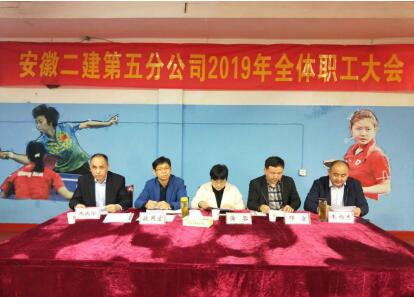 按照公司工會的統(tǒng)一部署和要求,五分公司于3月26日上午召開了2019年職工大會,公司副總經(jīng)理劉國良到會指導(dǎo),會議由黨支部書記朱慶年主持,分公司全體職工參會。